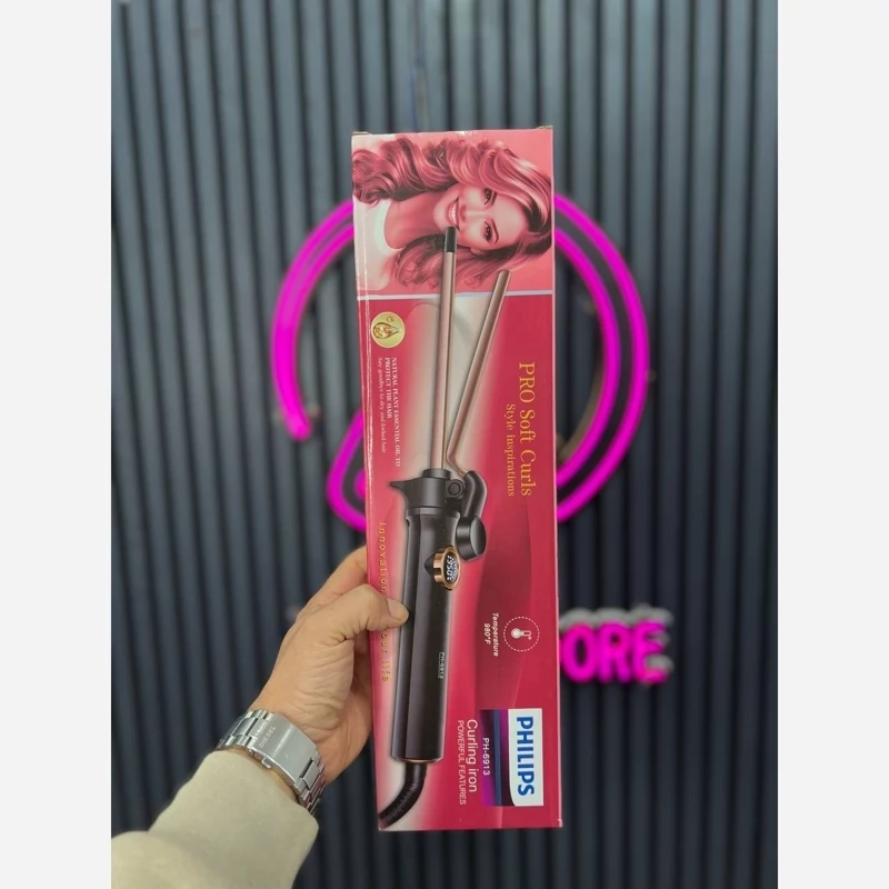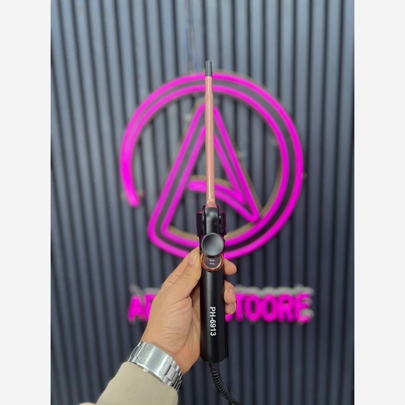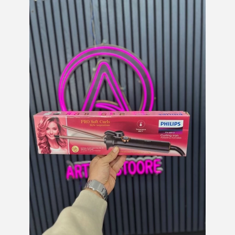 بابلیس مدادی فیلیپس کامل حرفه ای و سالنی دیجیتالی تا 980 درجه گرمایش قابلیت تنظیم دما سیم چرخشی 360 درجه جنس لوله سرامیکی گیره دار سایز 8 میل