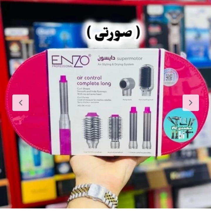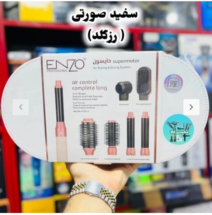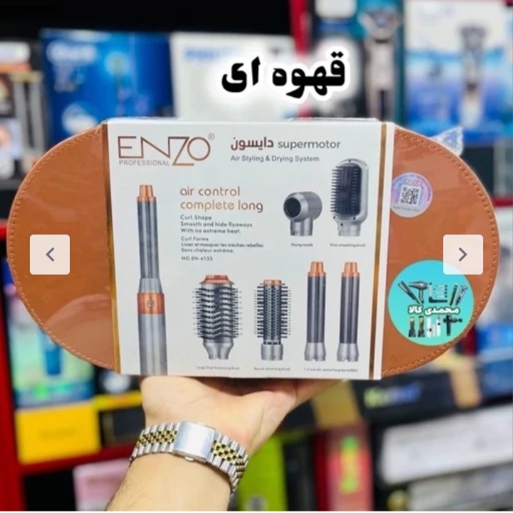 سشوار دارای شش سری متفاوت، دو عدد ایرپ چپ و راست، یک عدد برس تخت برای برس کشی وصافی موها، دو عدد برس در دو سایز برای حجم دهی به موهای کوتاه و بلند، و یک عدد کله متمرکز کننده.