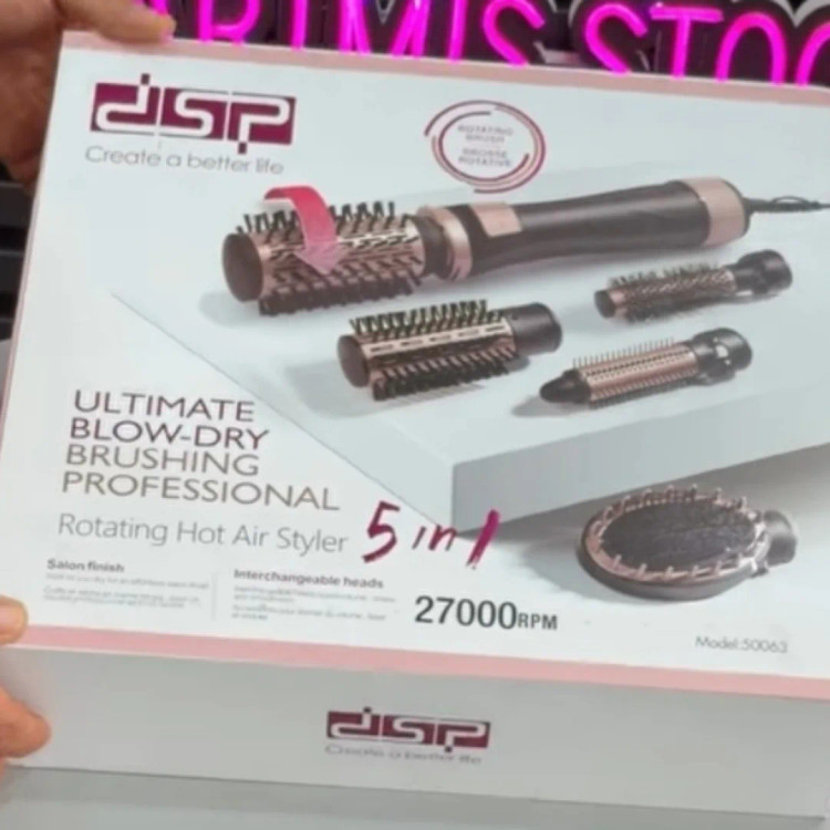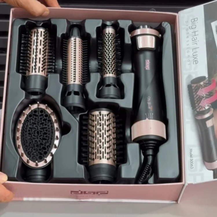 سشوار چرخشی دارای پنج کله،چرخش دوطرفه کله ها و یک عدد برس تخت جهت شانه و خشک کردن موها و چهار کله برس برای حجم دهی به موهای نازک و ضخیم. بسیار کاربردی.