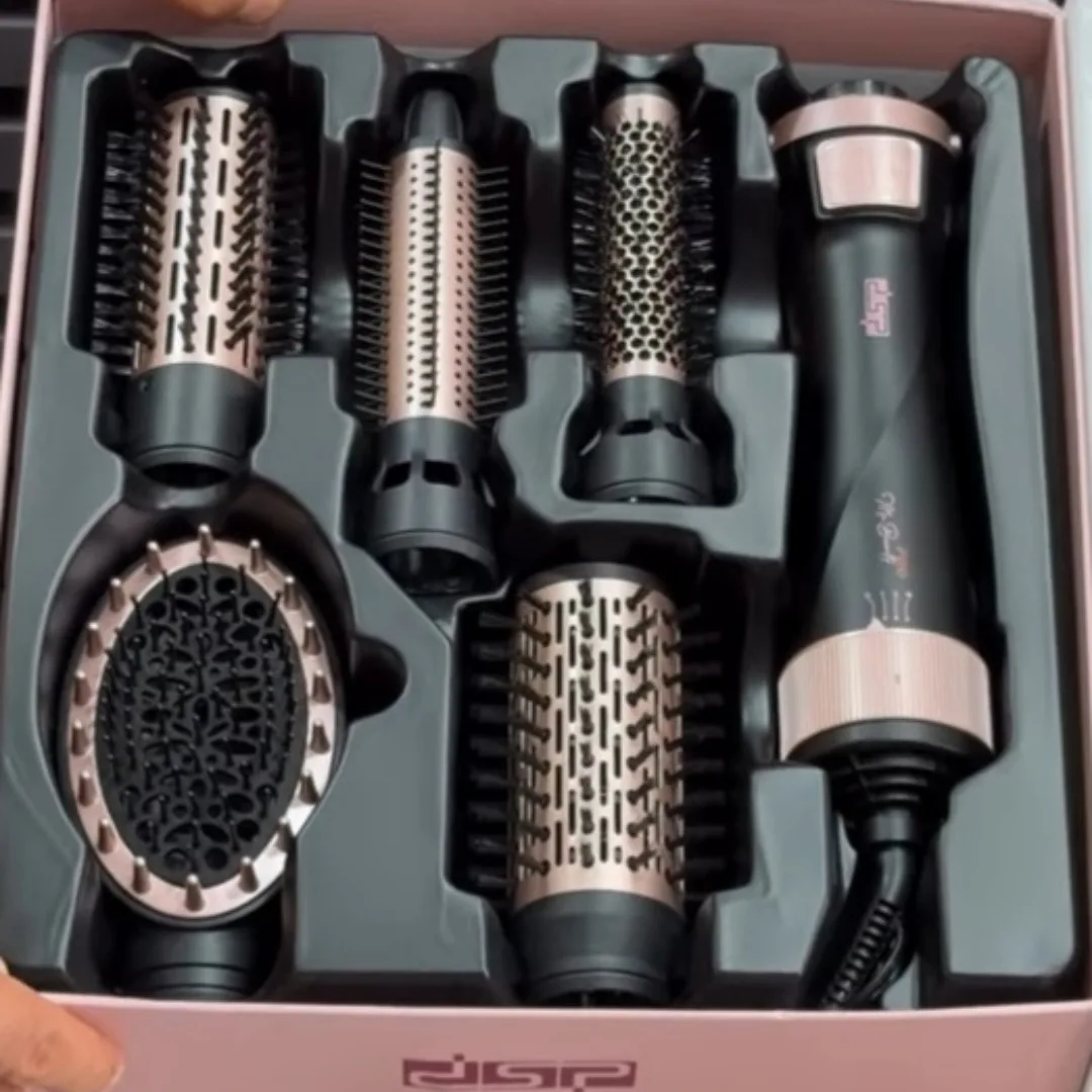 سشوار چرخشی دارای پنج کله،چرخش دوطرفه کله ها و یک عدد برس تخت جهت شانه و خشک کردن موها و چهار کله برس برای حجم دهی به موهای نازک و ضخیم. بسیار کاربردی.